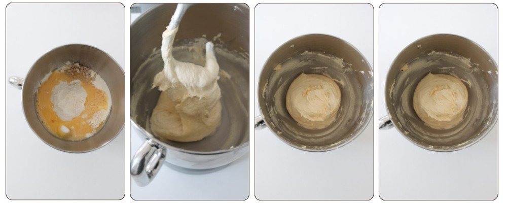 In the bowl of your stand mixer fitted with the dough hook, place the flour, sugar, salt, eggs, milk, orange blossom water, cream, and yeast. (Be careful not to let the yeast touch the salt directly).