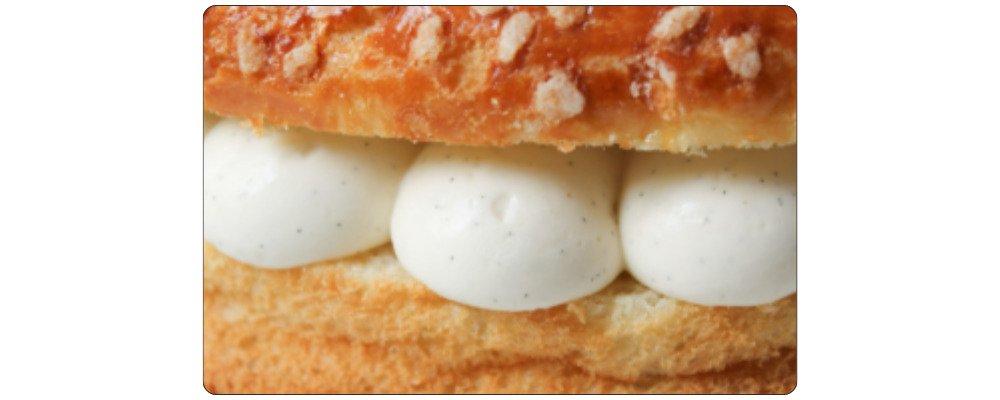 Pipe beautiful balls of cream onto the bottom half of the brioche and close with the top cap.