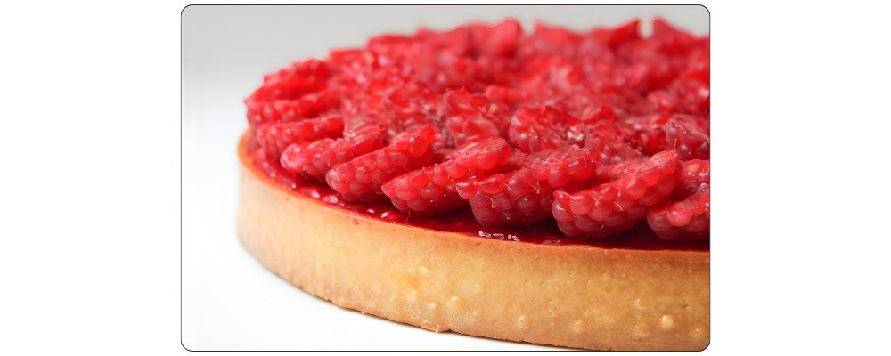Arrange your washed and dried fresh raspberries (400g) over the entire top of the tart.