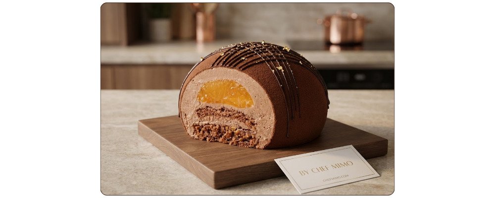 What sets this dessert apart is its architectural precision; it offers a stunning contrast in textures. Imagine the initial snap of the chocolate velvet shell, followed by the airy mousse, then the soft, syrup-soaked cocoa genoise, and finally, the surprise crunch of the “Praliné Croustillant” (crispy praline) at the base. The spherical shape adds a contemporary aesthetic, especially when finished with a “Velvet Spray” technique that gives the surface a matte, elegant texture, making it the ultimate centerpiece for holiday tables, weddings, or high-end dinner parties.