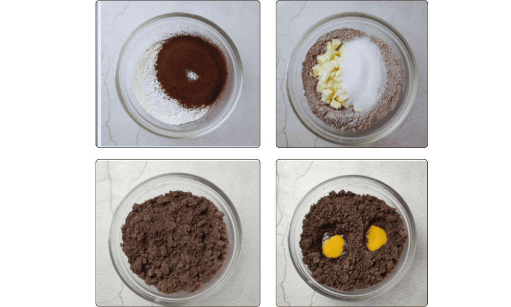 Remember that you can also prepare this cocoa shortcrust dough in a stand mixer or with the aid of a food processor. However, rest assured, it is very easy to do by hand as well.