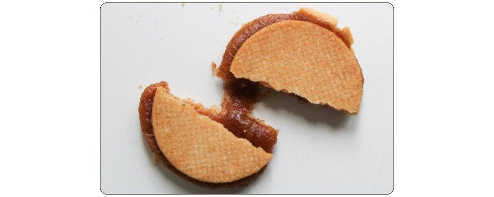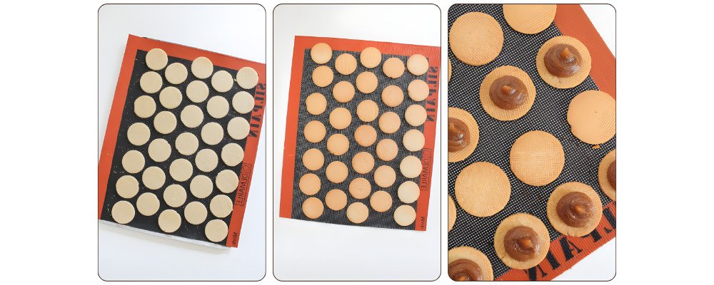 Using a piping bag (or a small spoon), pipe a ball of the Date Caramel onto the back of half of the biscuits.