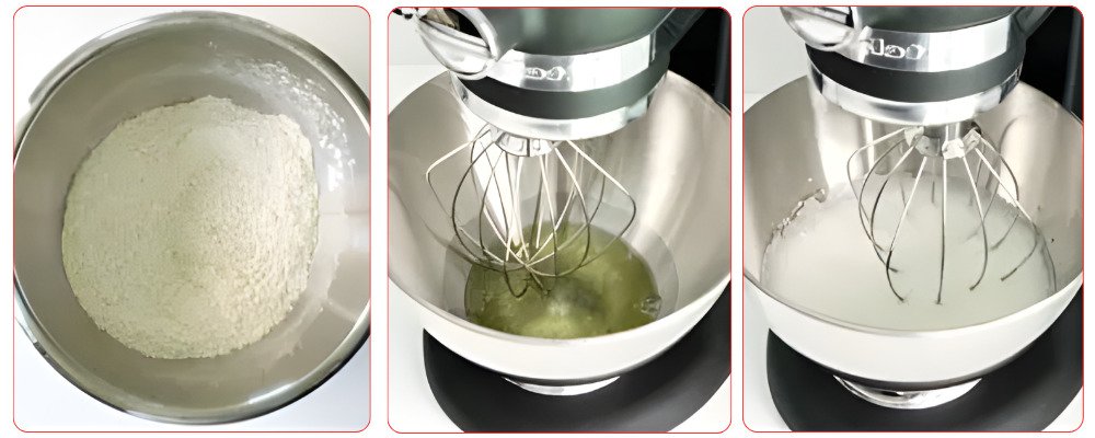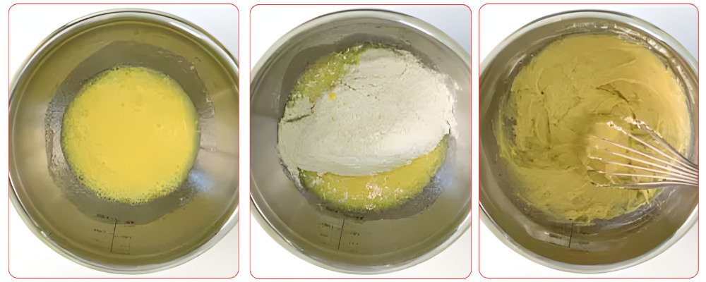 Add this liquid preparation to the dry preparation (flour, etc.) and mix using a spatula.