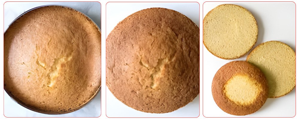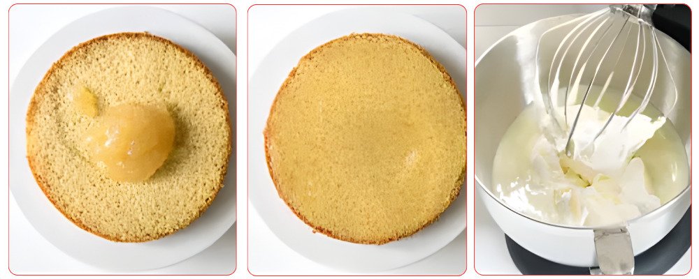 Cut your chiffon cake into 3 layers. If the top is very domed, I recommend cutting it off to have regular layers.