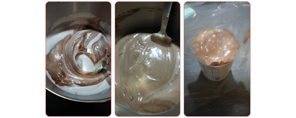 Then pour this mixture into the rest of the whipped cream, mixing gently with the spatula.